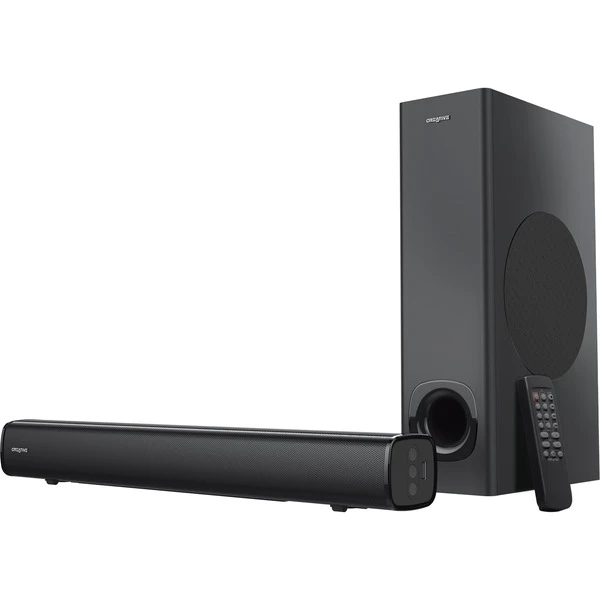 Die Creative Stage ist eine Hochleistungs-Soundbar für Computer und TV. Dieses leistungsstarke 2.1 System mit 160 Watt Spitzenleistung verfügt über zwei speziell abgestimmte Mitteltöner für deutlichere Dialoge und einen atemberaubenden Mitteltonbereich.Der begleitende Subwoofer ist die perfekte Ergänzung für satte, druckvolle Bässe, die im ganzen Raum nachklingen. Mit einer Vielzahl von Anschlussmöglichkeiten ist dies das perfekte Audio-Entertainment-System für den Einsatz am Desktop-Computer oder im Wohnzimmer. Das schlanke Design der Creative Stage fügt sich perfekt in jeden Raum ein und lässt sich auch unter einem ultrabreiten Monitor perfekt integrieren. Speziell für beengte Platzverhältnisse wird die Soundbar mit einem Wandmontage-Kit geliefert, mit dem man die Soundbar einfach an der Wand befestigen kann. Sie wird bequem über einen einzigen, integrierten Netzstecker mit Strom versorgt und bietet so mehr Platz auf dem Schreibtisch und der TV-Konsole. Mit der mitgelieferten Fernbedienung hat man Zugriff auf voreingestellte EQs für Filme, Musik, Konzerte und sogar Spielemodi! Neben den üblichen Audio- und Lautstärkereglern kann man mit der Fernbedienung auch die Höhen- und Basseinstellungen verändern. Die Creative Stage unterstützt eine Vielzahl plattformübergreifender Verbindungsoptionen wie drahtloses Bluetooth, AUX-in, Optical-in, TV (ARC) und USB-MP3. Ihre einfachen Anschlüsse machen die Soundbar zum Favoriten für jedes Audio-Upgrade.Art.-Nr.: 1576434
