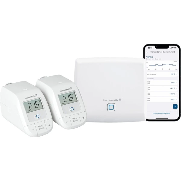 | Set bestehend aus | Homematic IP Access Point (HmIP-HAP), 2x Homematic IP Heizkörperthermostat – basic (HmIP-eTRV-B) | ||