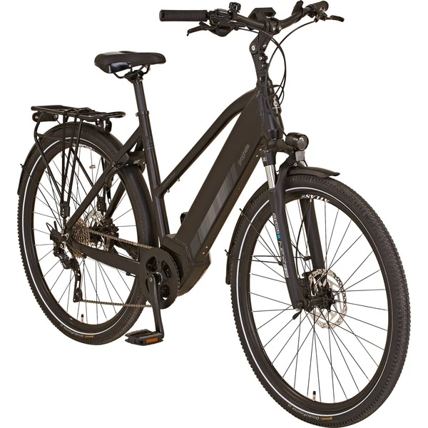 Bei dem neuen ENTDECKER E-Bike wurde der Akku komplett im Rahmen zu integrieren, was für eine sportliche und aufgeräumte Optik sorgt. Der AEG 36 Volt Akku mit 576 Wh versorgt den AEG ComfortDrive Mittelmotor für Reichweiten von bis zu 180 km, je nach Fahrweise. Das Damenmodell des Prophete ENTDECKERs kommt mit einer angepassten Trapezrahmenkonstruktion, die ein zulässiges Gesamtgewicht von bis zu 150 kg trägt und so auch noch genug Spielraum für eine zusätzliche Beladung hat. Auf dem neuen AEG TFT Display mit proKey, proLock und USB Ladefunktion hat man alle wichtigen Informationen auf einen Blick am Lenker. Neben der Motorunterstützung mit 250 Watt sind die Shimano Deore XT 10-Gang Kettenschaltung und die Suntour NEX E25 Federgabel mit Lockoput Funktion die wichtigsten Ausstattungsmerkmale, wenn es um komfortables Fahren geht. Neben dem Komfort soll bei diesem ENTDECKER E-Bike aber auch die Sicherheit nicht zu kurz kommen. Sichtbarkeit durch 100 Lux LED Scheinwerfer und Rücklicht mit Standlichtfunktion, sowie die Reflexbereifung von Continental sind ebenso wichtig, wie die hydraulischen Shimano Scheibenbremsen. Wohldosiert in den Stand und das E-Bike immer unter Kontrolle: das Zusammenspiel aller Komponenten macht dieses Prophete ENTDECKER Modell aus.Art.-Nr.: 1617483